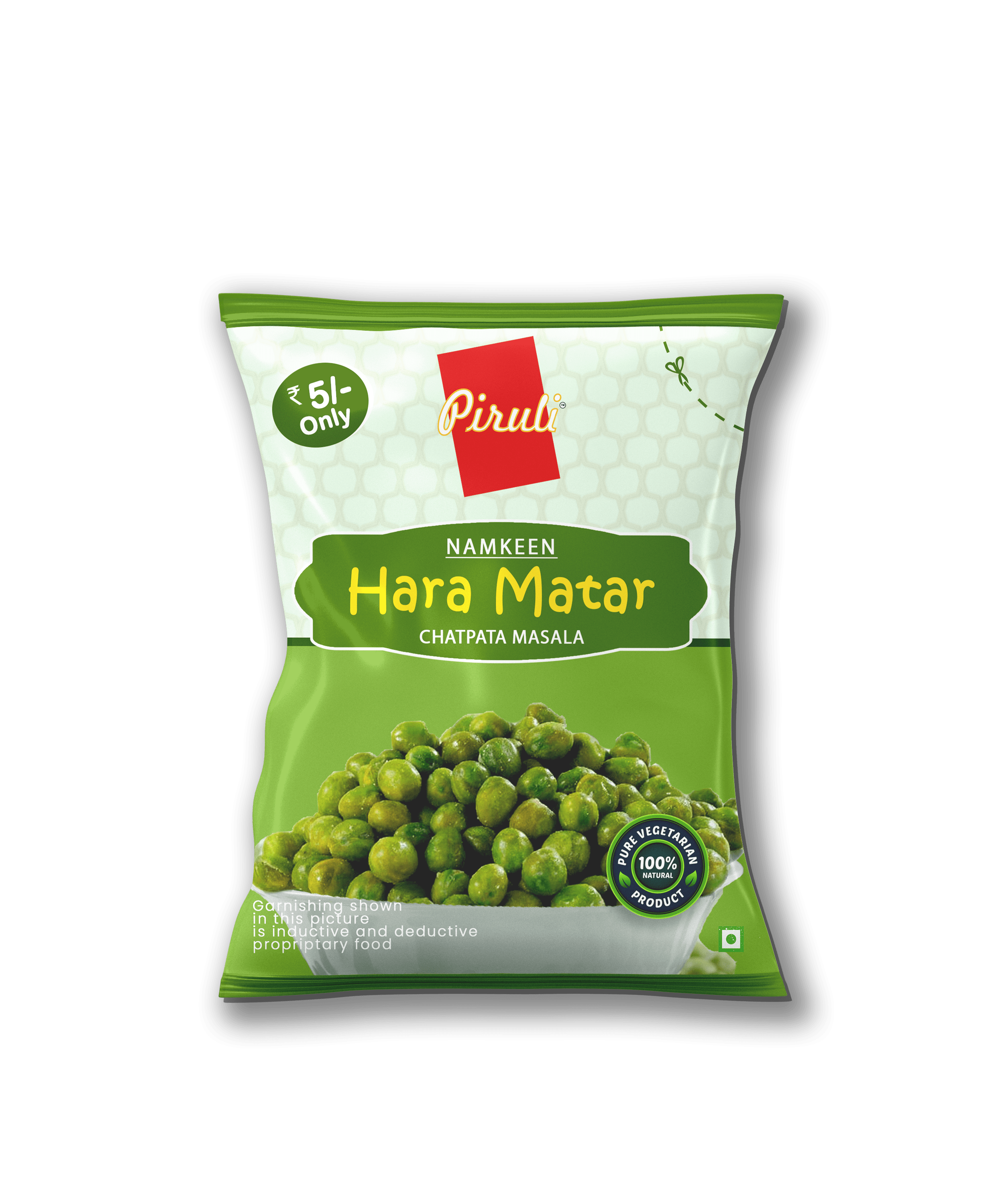 Piruli Hara Matar is a crunchy and flavorful snack made from high-quality green peas, perfectly seasoned to delight your taste buds, available in convenient pack sizes for all occasions.